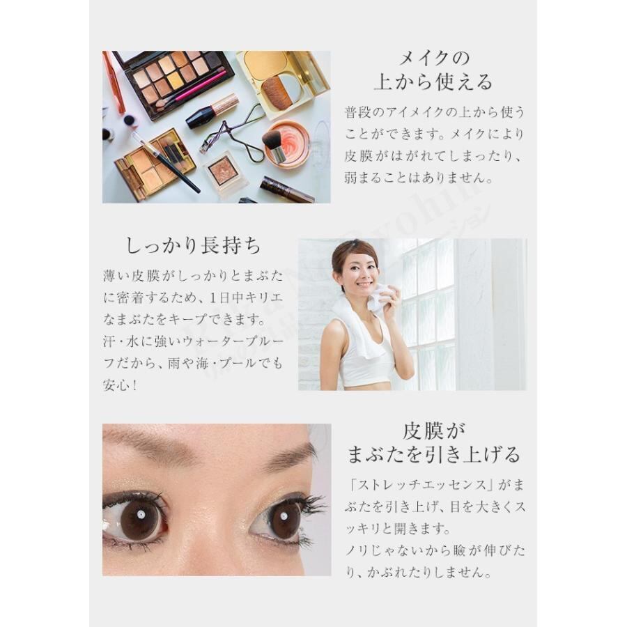 塗った部分が透明な皮膜になり、二重まぶたを演出します。